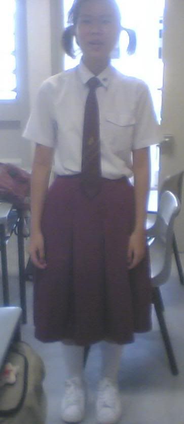 If you're doubting, it's really me, i borrowed someone's skirt, bought loooong socks and well, went to school that way. Serious. I think i freaked out quite a lot of people though. Heehz.